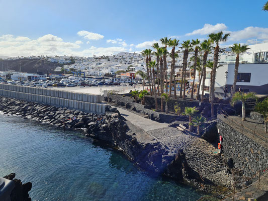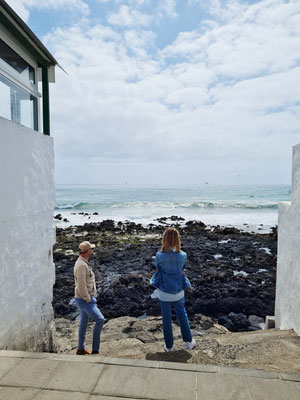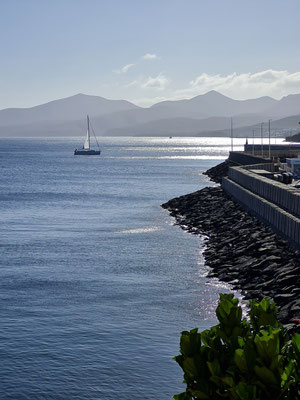 10:00 Uhr: Mit zwei Mietwagen zum Flughafen Lanzarote, Verabschiedung von Ricarda, die um 13:10 Uhr mit RYANAIR nach Dublin fliegt, (von dort weiter mit Bus nach Newry, wo sie von ihrer Bekannten Ruth abgeholt und nach Mourne Grange gebracht wird). Der Rest der Gruppe fährt nach Arrecife, Einkaufen von Proviant und Pause an der Promenade von Arrecife.